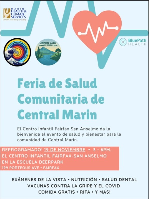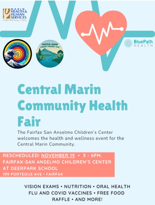 Central Marin & Fairfax San Anselmo Children's Center Community Health Fair - Wednesday, November 19th at FSACC Multipurpose Room, 3-6pm (English | Spansh)